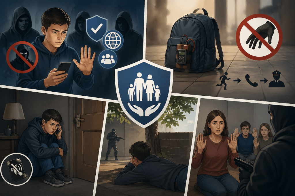 Экстремизм мен терроризм қаупі төнгендегі алгоритм — бұл адам өмірін сақтауға бағытталған жедел іс-қимылдар жиынтығы. Негізгі ереже: сабырлық сақтау, қауіпсіз жерге жасырыну және дереу құқық қорғау органдарына (102, 112) хабарлау.